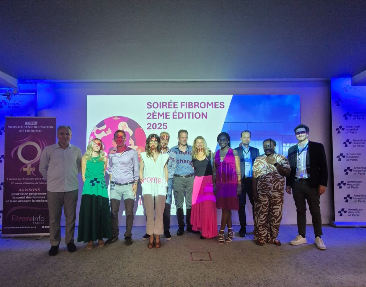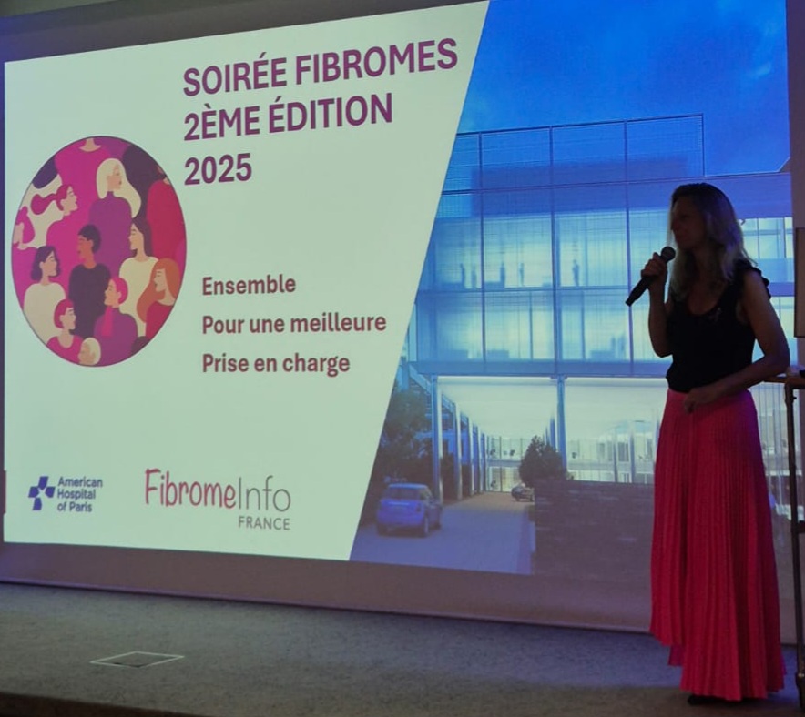 Depuis 2023, Fibrome Info France organise en collaboration avec l’hôpital américain de Paris, une soirée de sensibilisation au fibrome à destination des professionnels de santé, des femmes touchées par la maladie et leurs proches.