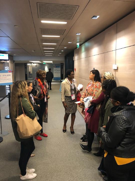 Des femmes en quête d’informations sur les traitements alternatifs à la chirurgie font la queue devant la salle de conférence. Cet atelier utile et nécessaire à l’information éclairée des femmes qui souffrent de fibromes est un modèle de collaboration entre associations de patientes et professionnels de santé permettant un meilleur accès aux soins et les conditions d’un dialogue propice à une prise de décision libre et éclairée.