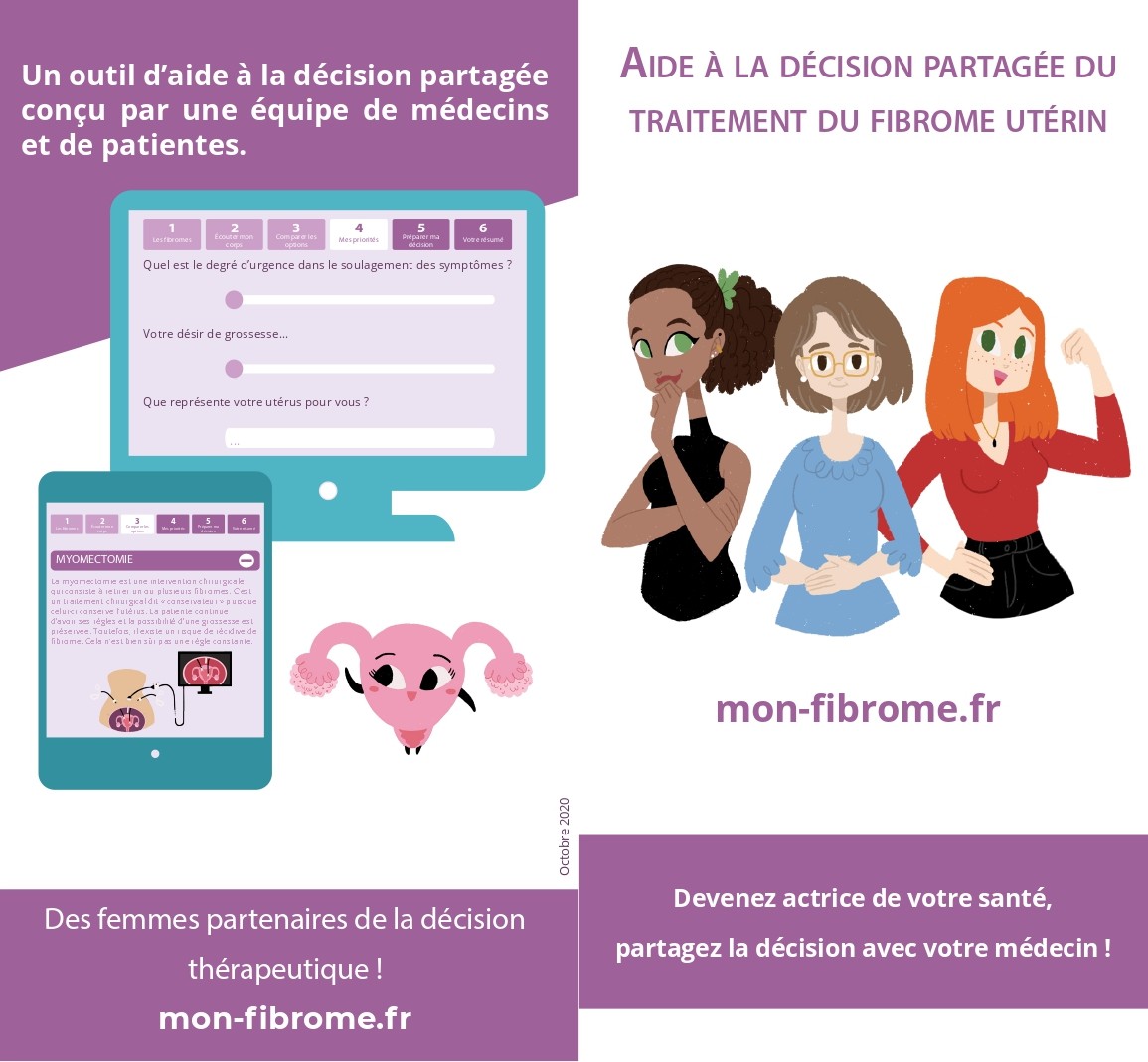 Ce support didactique a été pensé et conçu par Fibrome Info France pour répondre au besoin d’information et d’accompagnement des femmes touchées par la maladie. L’association entend à travers ce guide, doter les femmes d’un outil pédagogique permettant à chacune de devenir actrice de sa santé.